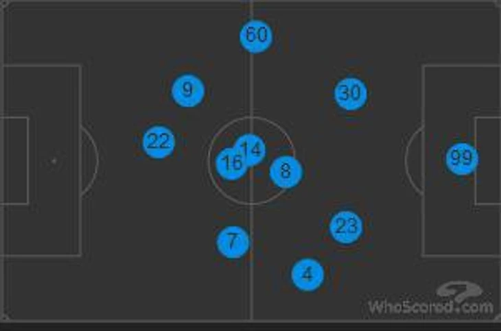 Эксперимент признать успешным. В нашем арсенале появилась еще одна вариация схемы, это условная(плавающая) 4-3-3, а новая она потому что в первую очередь новые исполнители. О особенностях схемы мы говорили прямо во время матча(посты в VK), отметим на карте средних позиций насколько компактно располагается трио ЦП.