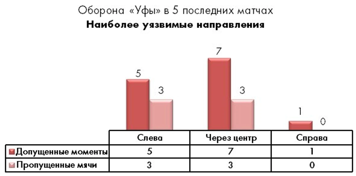 В то же время, детальный видеоразбор допущенных моментов в пяти последних матчах «Уфы» выявил определенные слабости, которыми «Зениту» необходимо воспользоваться.