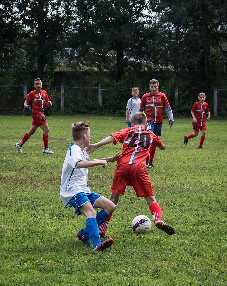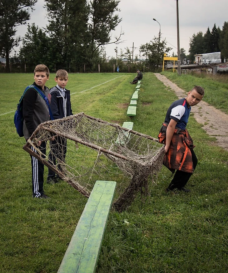 С командой мы встретились на футбольном поле за несколько часов до начала матчей. Ребята торопились после школы, чтобы как можно скорее оказаться на поле и помочь тренерам в подготовке игровой площадки: передвинуть ворота, натянуть сетки, поставить угловые флажки, поправить разметку.