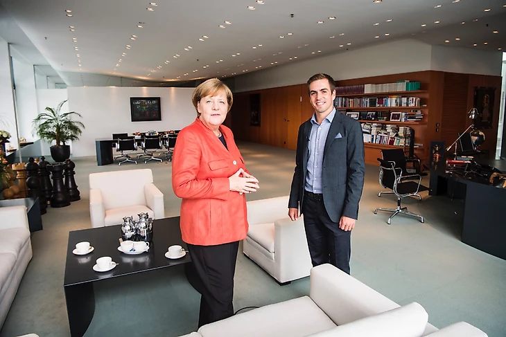 Филипп Лам должен подождать. У канцлера важный телефонный разговор с президентом России Владимиром Путиным. Разговор о Северной Корее. Поэтому поприветствовать бывшего капитана сборной Меркель сможет только на 15 минут позже запланированного времени. Зато специально для Лама проводят экскурсию – сначала по галерее в коридоре, потом по ее кабинету с видом на Рейхстаг. Архитектор намеренно сделал так, чтобы канцлер всегда мог видеть парламент, объясняет Меркель, перед тем как налить Филиппу кофе. Для интервью они спускаются на два этажа ниже в зал для государственных банкетов.