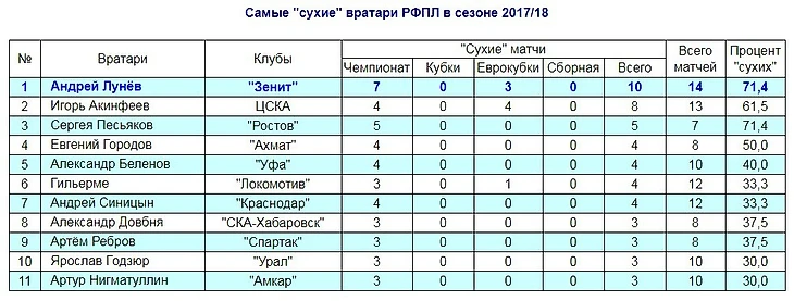 Источник: http://zenit-history.ru/statistika/228-raznoe/6374-samye-sukhie-vratari-rfpl-v-sezone-2017-18