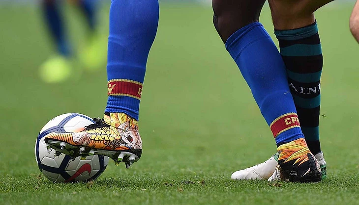 Это новые бутсы Бакари Сако, малийского полузащитника «Кристал Пэлас». Их ему сделал Пьер Наварро, известный парижский дизайнер кроссовок, раскрасивший бутсы вручную.
