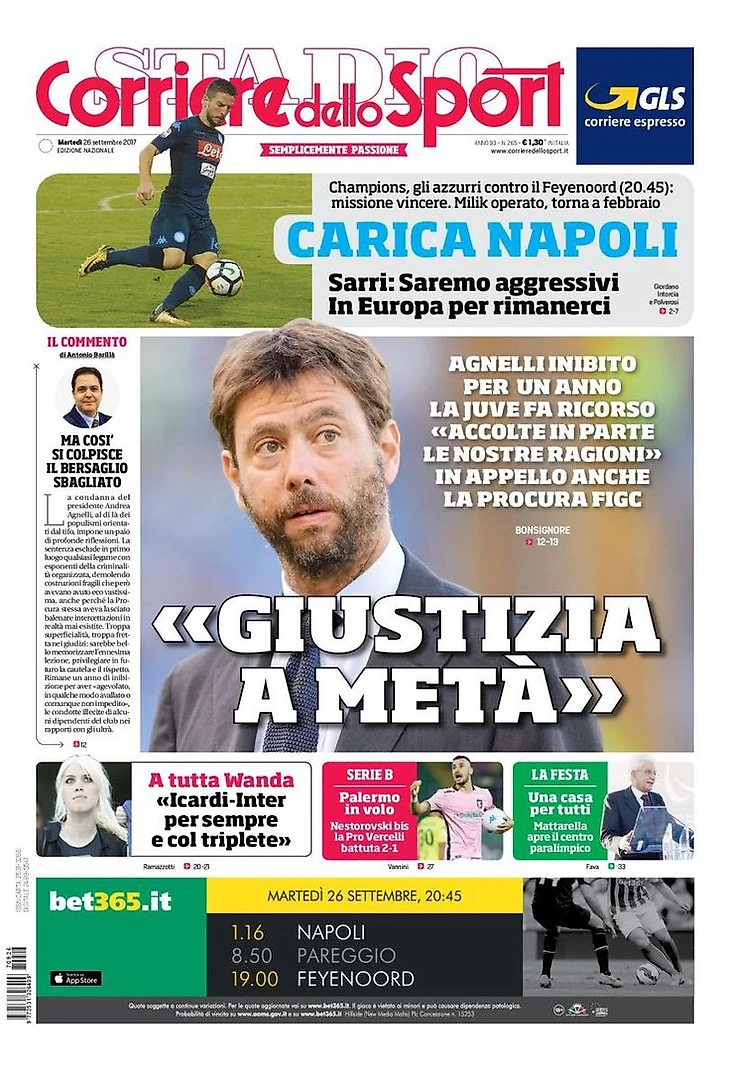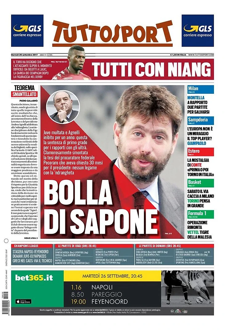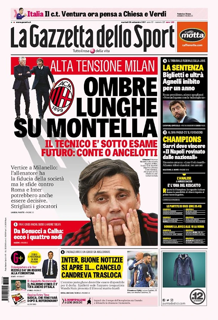 Мыльный пузырь. Заголовки Gazzetta, TuttoSport и Corriere за 26 сентября