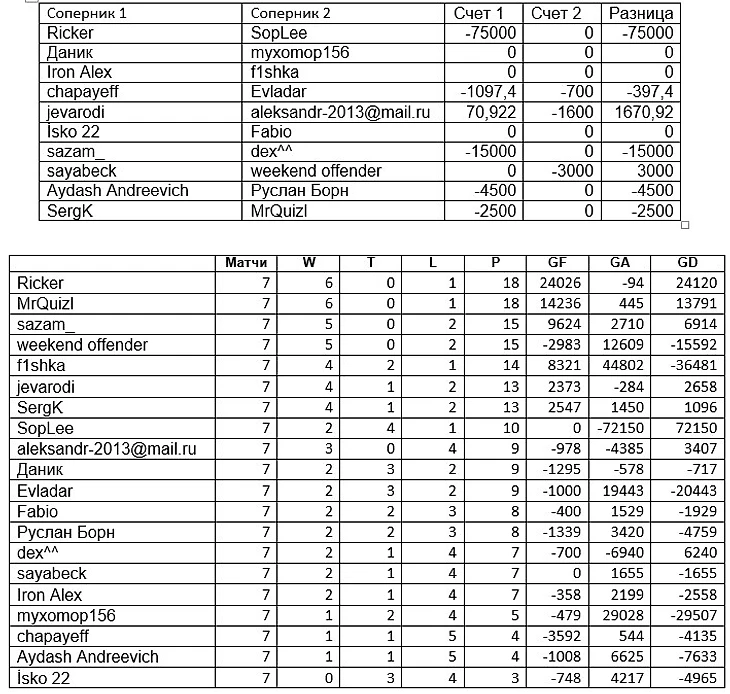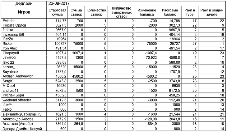 5. Напоминаю, что у нас действует лимит в 5 ставок в туре. В противном случае мной будут учитываться лишь первые 5 ставок, остальные просто отбрасываться. Ну а теперь - к итогам.