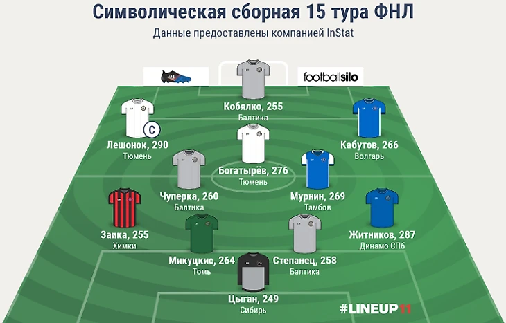 Лучшим клубом 15 тура ФНЛ стала "Тюмень" со средним общекомандным рейтингом InStat Index, равным 236 баллам. Худшей же командой оказался "Олимпиец", набравший лишь 174 баллов.