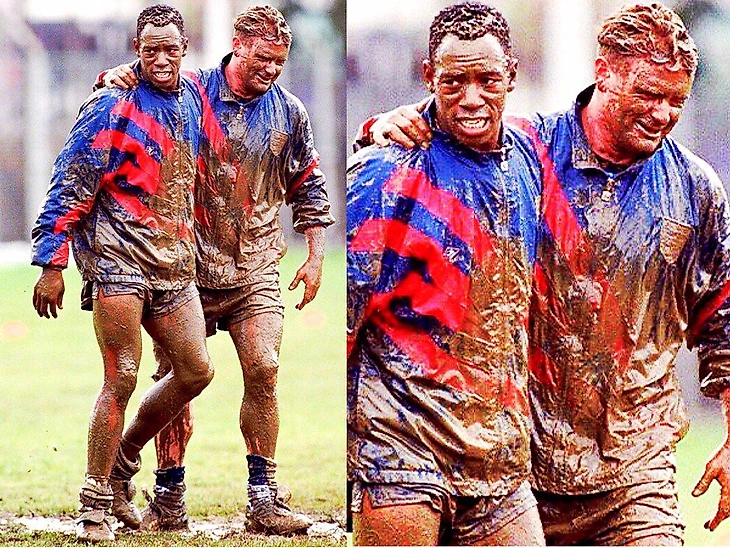 Иан Райт и Пол Гаскойн в расположении сборной Англии, 1993.