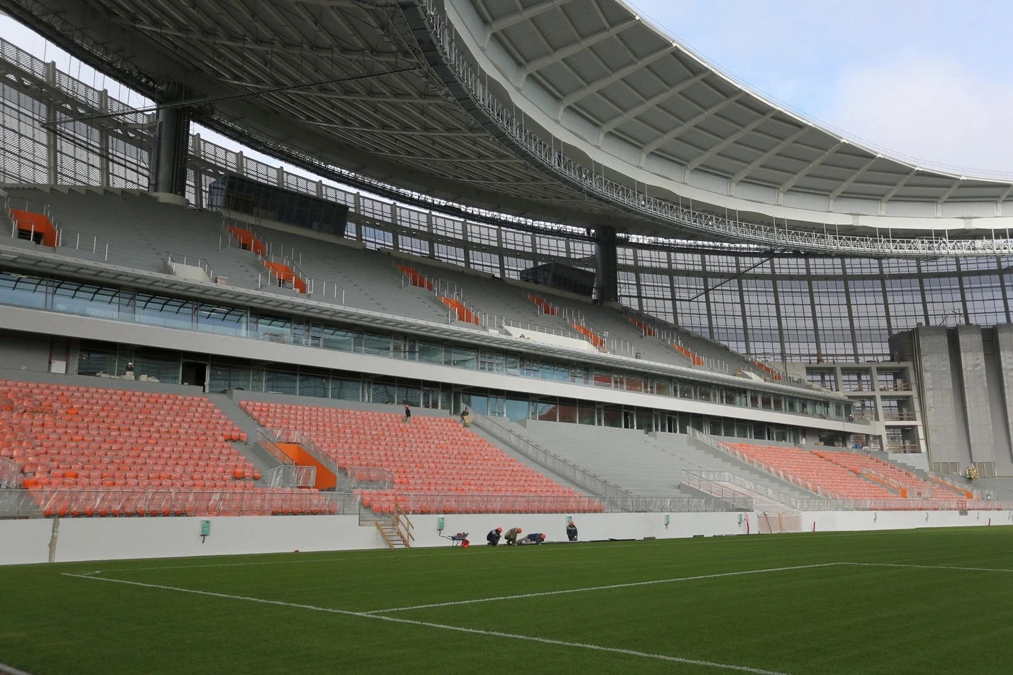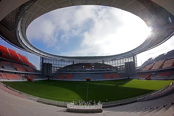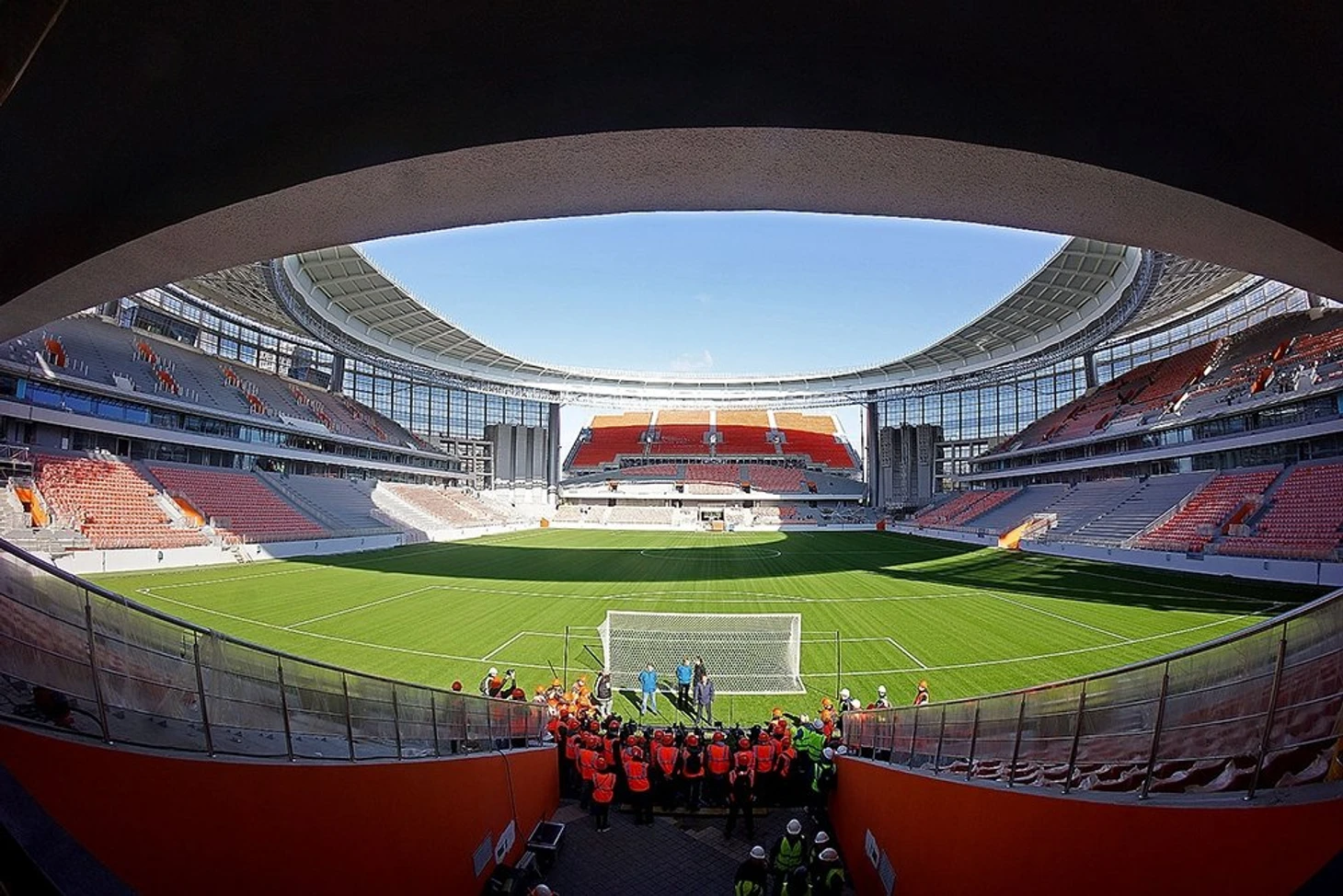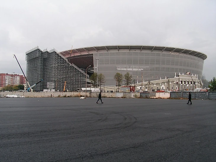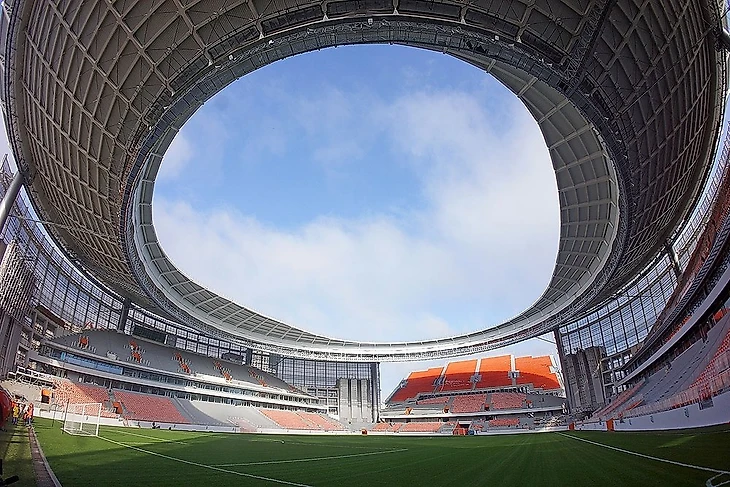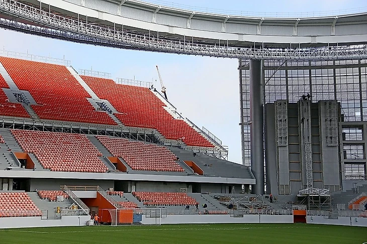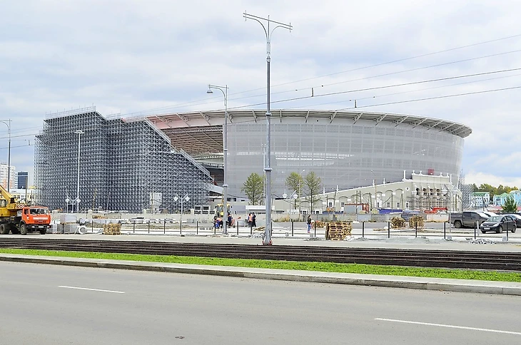 В Екатеринбурге выраститли газон, установили много сидений, покрасили фасад (тот самый, исторический) в какой-то серо-оливковый цвет, значительно лучше гармонирующий с серой надстройкой, и теперь, не смотря на очень спорный проект, от стадиона трудно оторвать глаз. В общем, смотрите сами.