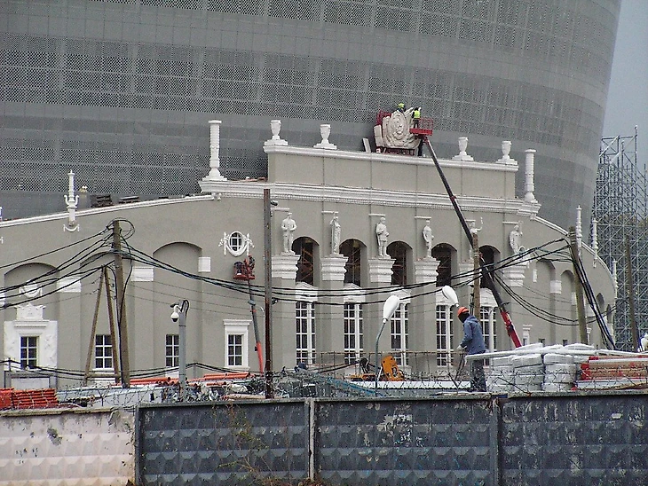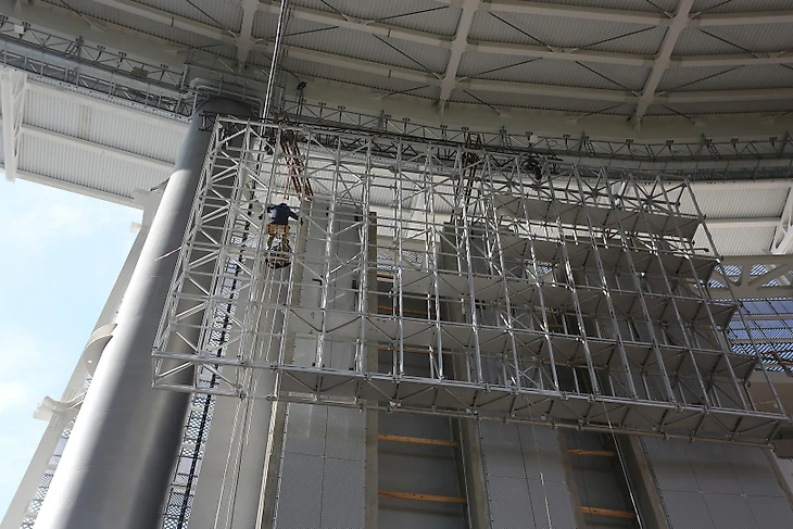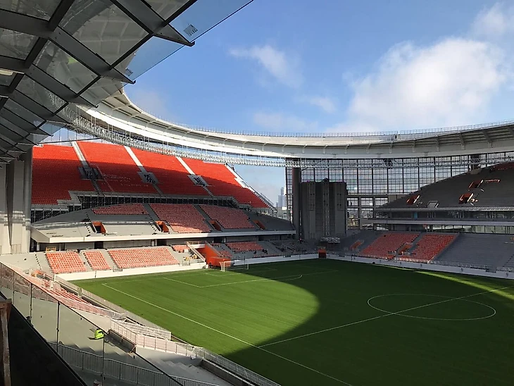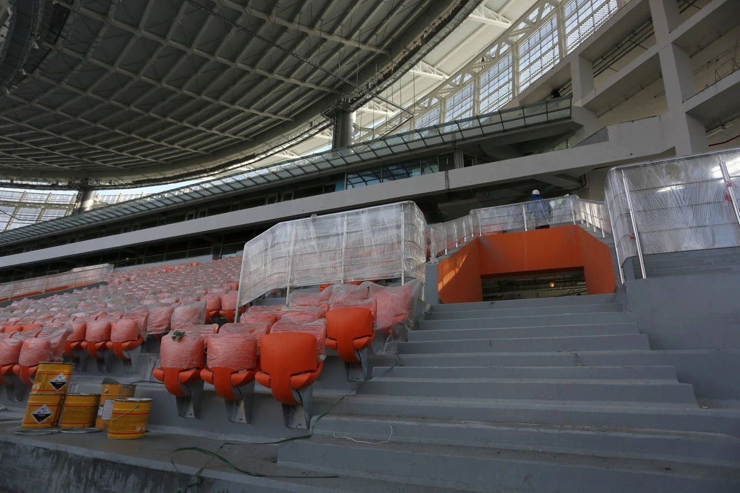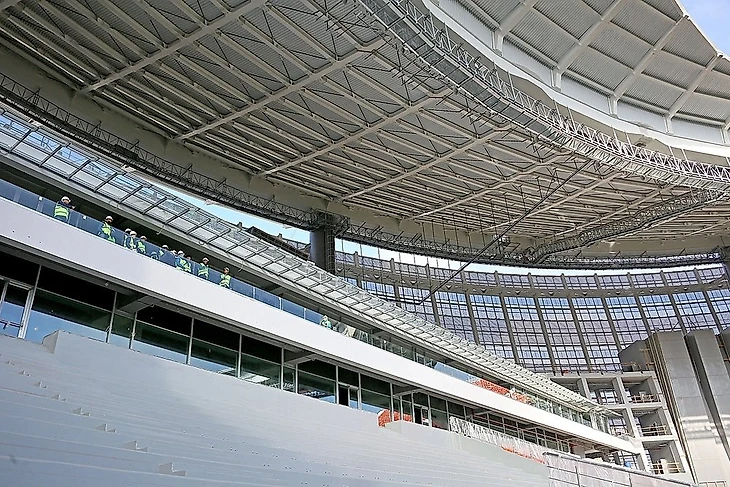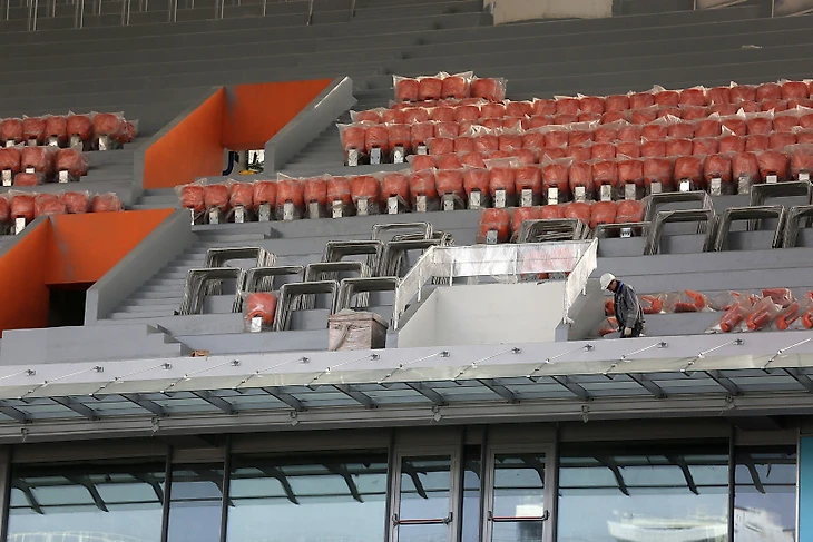 В Екатеринбурге выраститли газон, установили много сидений, покрасили фасад (тот самый, исторический) в какой-то серо-оливковый цвет, значительно лучше гармонирующий с серой надстройкой, и теперь, не смотря на очень спорный проект, от стадиона трудно оторвать глаз. В общем, смотрите сами.