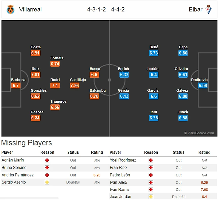У Эйбара и тренер прежний и проблемы прежние. Без Ивана Рамиса(5,5) баски пропустили ажно десять голов за последние два матча. А без Педро Леона - крайне уныло выглядят в атаке. Новости пока оптимизма не навевают: восстановление Педро Леона затягивается и баски уже думают над тем, чтобы усилить полузащиту в зимнее трансферное окно.