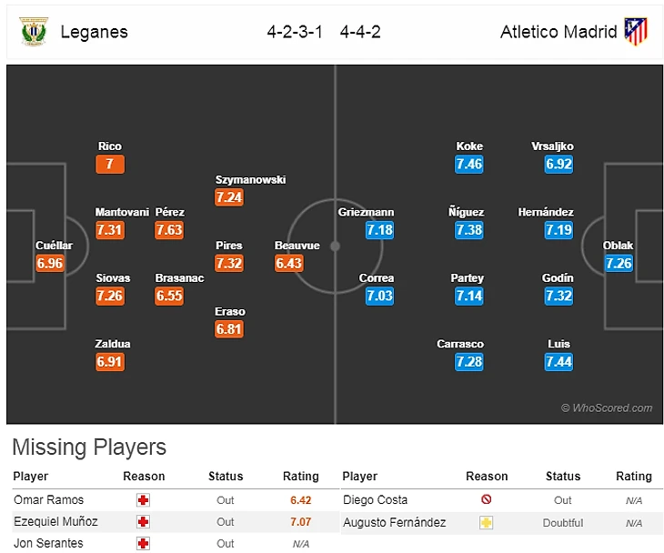 А вот в Леганесе и без Лиги чемпионов люди из строя выходят. Помимо тех, кто травмирован давно и прочно опасение вызывает здоровье капитана команды Мантовани(5,5) и свежекупленного Амрабата(6,5)