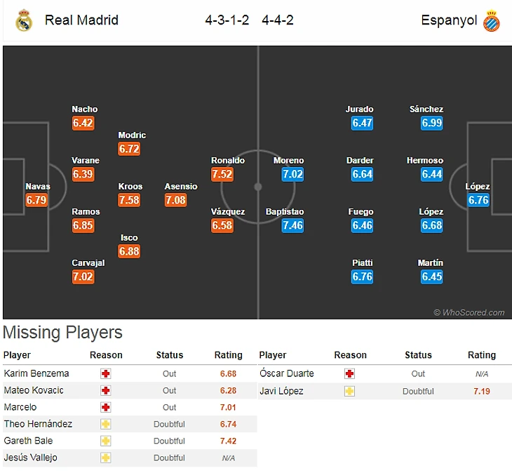 На что обратить внимание: На Луиса Фелипе(7) который получил травму в игре с Челси и пропустит не меньше недели. Так что на фланг завтра придется выпускать кого-то другого. По всем раскладам туда просится Люка(6), но у молодого индейца нашли повреждение и он даже не вошел в итоговую заявку мадридцев.