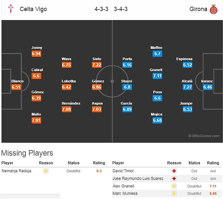 У Жироны тоже накопились потери: в итоговую заявку каталонцев не вошли ни Гранель(5,5) ни Муньеса(5).