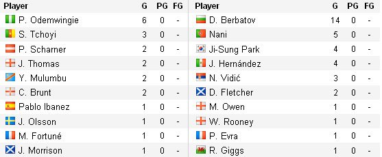 У «Манчестер Юнайтед» наверняка стандартная 4-4-2, где в нападении Димитар Бербатов и Уэйн Руни. В полузащите Луиш Нани, Даррен Флетчер, Андерсон и Райан Гиггз. В защите Патрис Эвра, Рио Фердинанд, Неманья Видич и Рафаэль Да Силва. На воротах надёжный Эдвин Ван дер Сар.