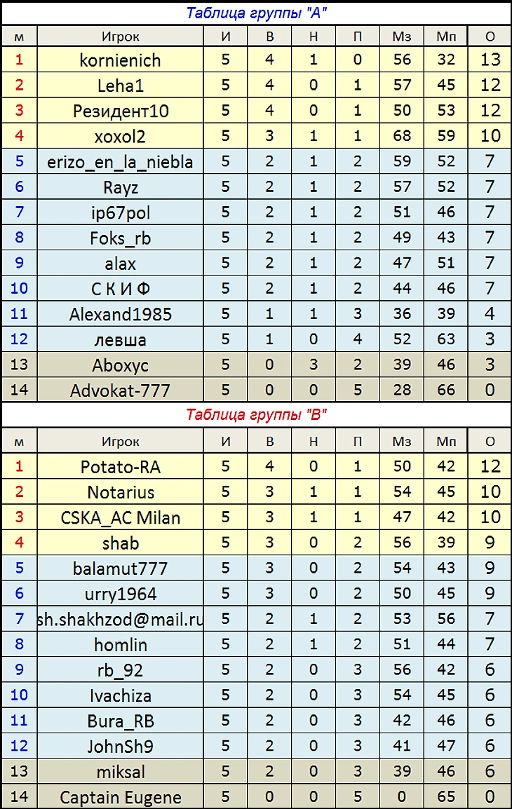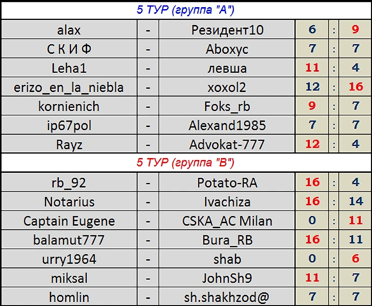 Привет Всем! Подводим итоги очередного тура в Лиге РА...