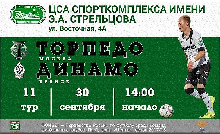 30 сентября, в 11-м туре первенства ПФЛ московское «Торпедо» примет на своём поле «Динамо» из Брянска, которое побеждает шесть туров подряд и столько же игр мячей не пропускает.