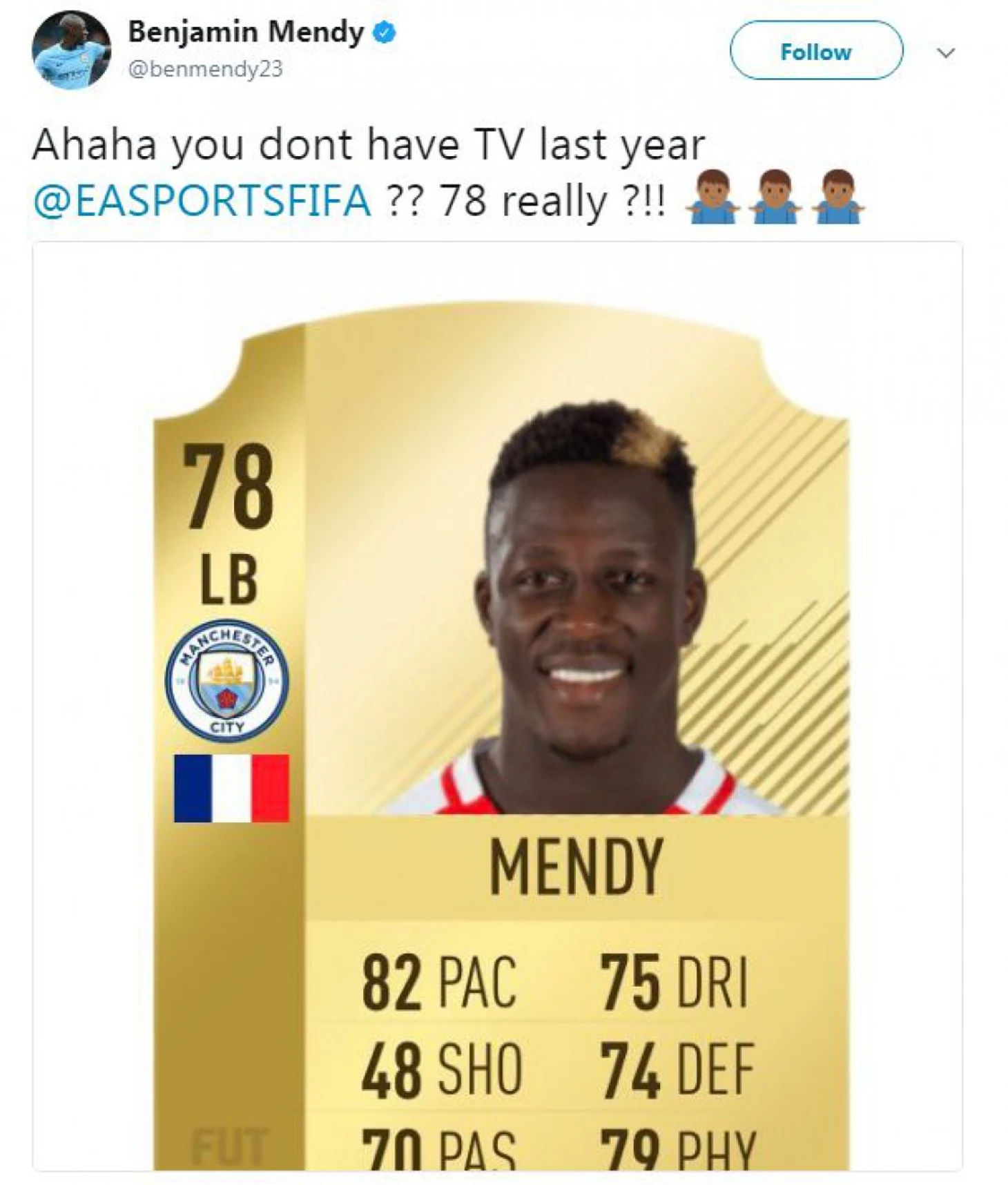 Французский защитник Манчестер Сити буквально взорвал Twitter своим негодованием по поводу рейтинга в игровом симуляторе.Футболист настолько был поражен своим низким скилом, что обратился к разработчикам с просьбой пересмотреть его игры и купить себе телевизор.