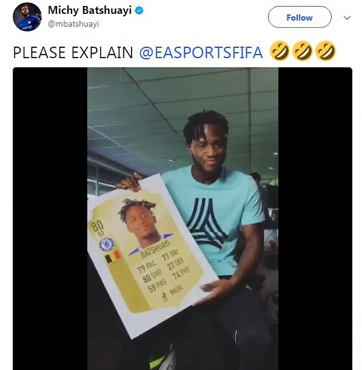 Нападающий Челси Миши Батшуайи решил немного затроллить разработчиков FIFA.Бельгийский нападающий опубликовал в Twitter карточку со своим скиллом и спросил, почему у него настолько маленький рейтинг.