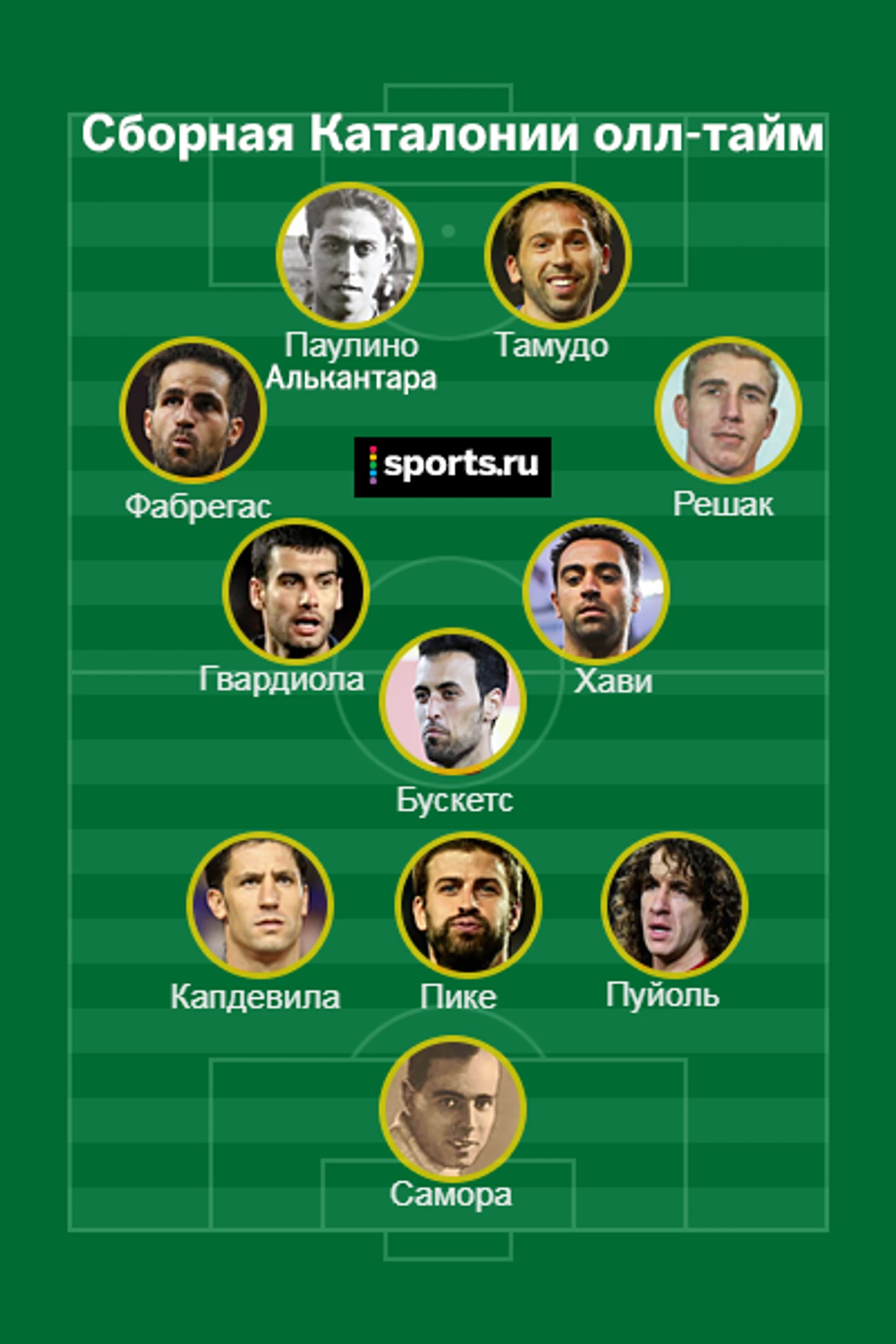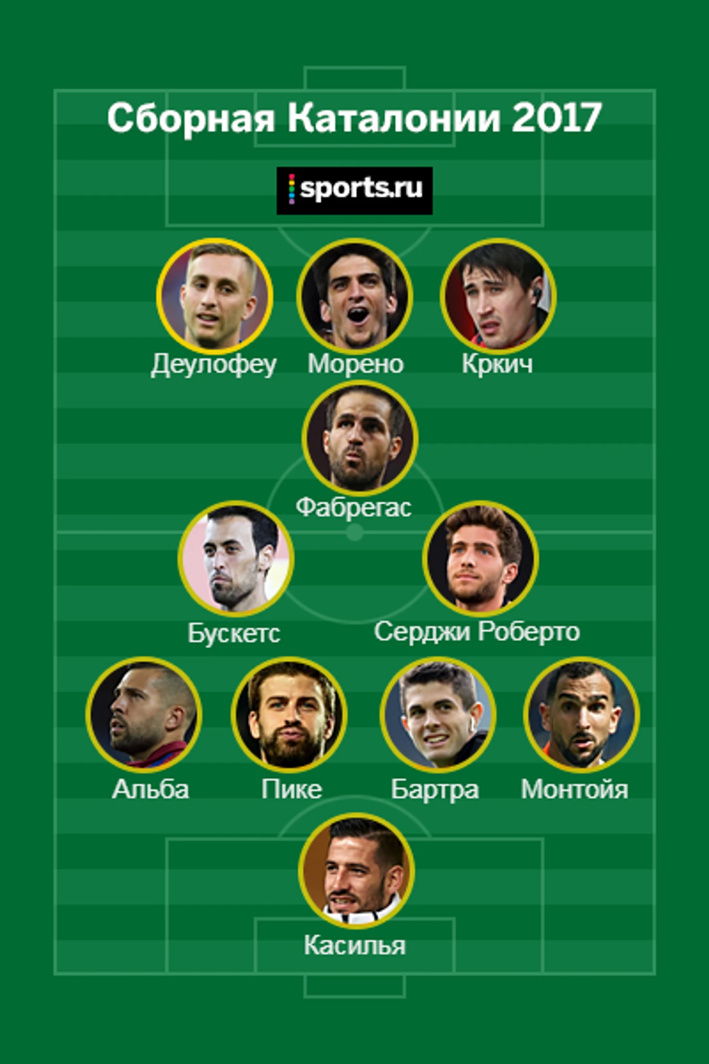 Футбольная сборная Каталонии, на самом деле, существует больше 100 лет и время от времени проводит неофициальные матчи, причем играют за нее почти все местные звезды – Пике, Фабрегас, Бускетс и другие. Вот как выглядит сильнейший вариант этой команды прямо сейчас: