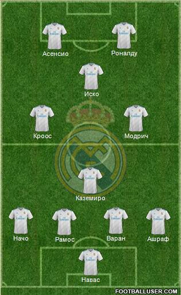 Ну а теперь, уже по сложившейся традиции, я хочу представить вашему вниманию мой вариант стартового состава Реала на сегодняшний матч. С учетом того, что Гарет Бейл "страдает" от мышечного повреждения, а Карвахаль испытывает серьезные проблемы со здоровьем, я не исключаю, что Зидан прибегнет к ротации состава, тем более, что скоро пауза на игры сборных и многие игроки Реала покинут команду для участия в отборочном турнире ЧМ 2018 года.