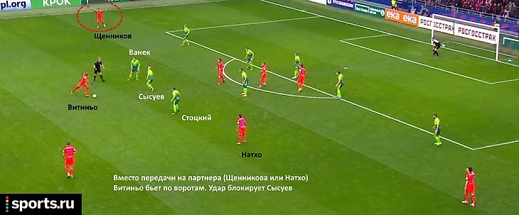 В воскресенье у команды Семака не получилось быстро доставить мяч к штрафной Акинфеева, и атака стала позиционной, но в игре с «Динамо» подобный перехват закончился голом Ванека.
