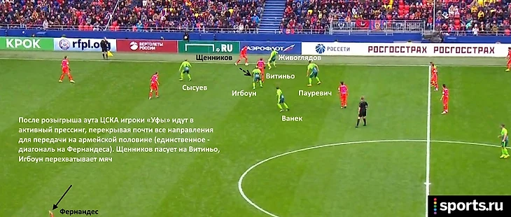 Матч с ЦСКА в этом контексте сильно отличался от того, что показывает команда Семака обычно. В воскресенье уфимцы выполнили 12 кроссов с игры. В чем была аномалия? 4 кросса пришло от Ванека, а самый опасный момент «Уфы» случился после нижнего кросса Игбоуна на Стоцкого в центр штрафной.