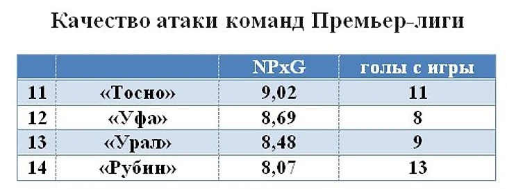 По качеству атаки «Уфа» занимает 12-е место в лиге. Некоторые из соседей уфимцев по xG-таблицы забивают больше ожидаемого, у команды Семака никаких превышений нет.
