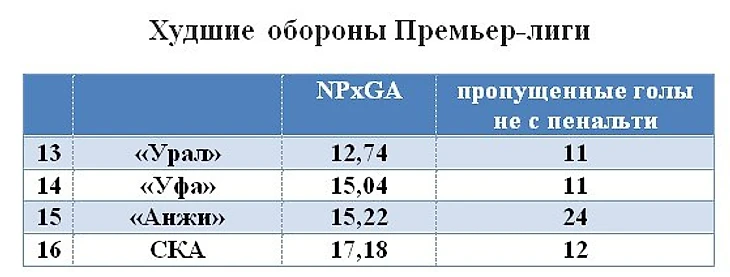 Такой стиль приводит не только к низкой общей эффективности атак, но и большому удельному весу ударов после кроссов, если они все-таки наносятся. «Уфа» меньше всех бьет (8,3 удара за матч, у СКА и «Амкара» – по 8,9), но по xG при этом – совсем не худшая команда лиги.