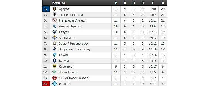 По итогам 11-го тура первенства ПФЛ в группе «Центр» её лидер, «Арарат», оторвался от ближайших преследователей на 8 очков.