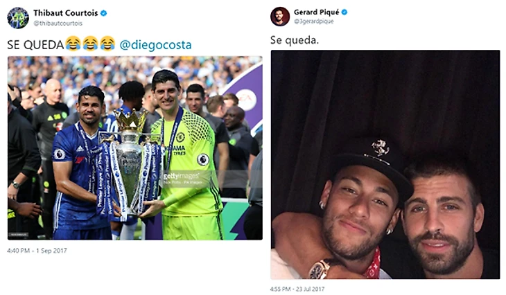 Куртуа разместил фотографию себя с Диего Костой и подписал ее аналогичным в случае с Пике и Неймаром способом.