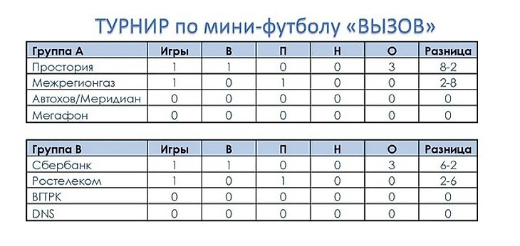Крупные победы "Сбербанка" и "Простории" не должны вводить в заблуждение стороннего зрителя, что борьбы в обоих встречах не было. Разгромные победы получились лишь благодаря более успешной реализации своих голевых моментов. Да и выводы какие-то после первого тура делать достаточно тяжело. Пока видно, что все команды достаточно боевиты и навяжут борьбу любому сопернику в группе, пусть и коллектив "Сбербанка" несколько более качественно выделяется на их фоне.