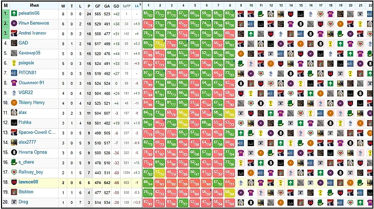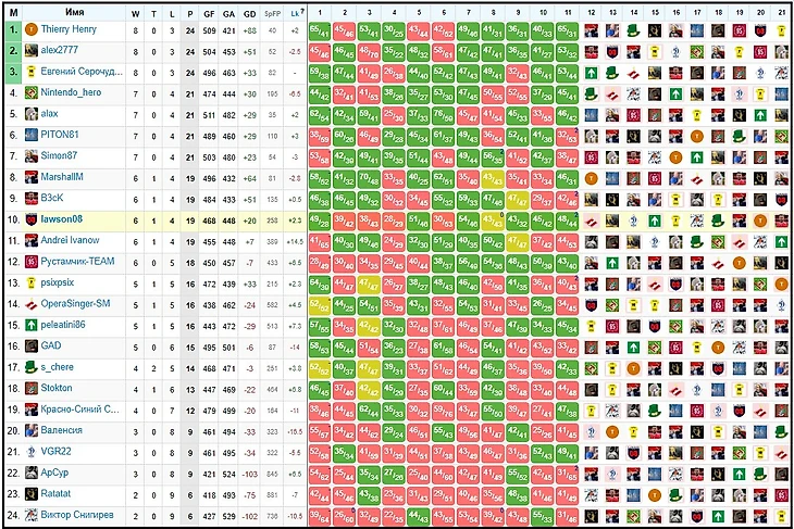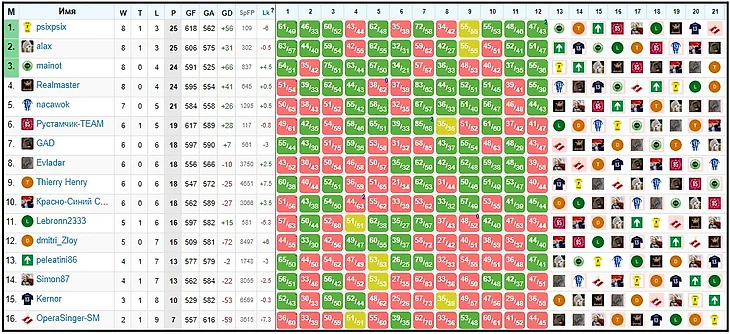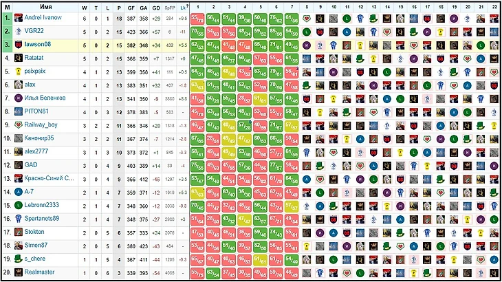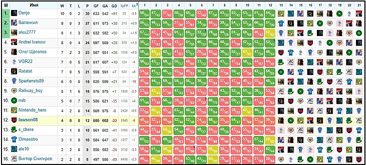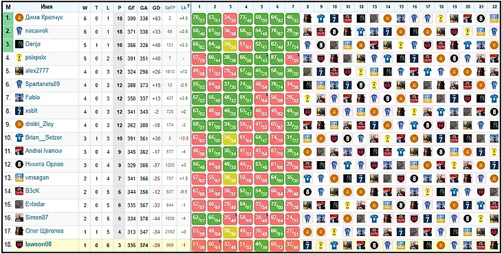 Fantasy H2H турниры. Промежуточные результаты платных Европейских турниров (круговые)