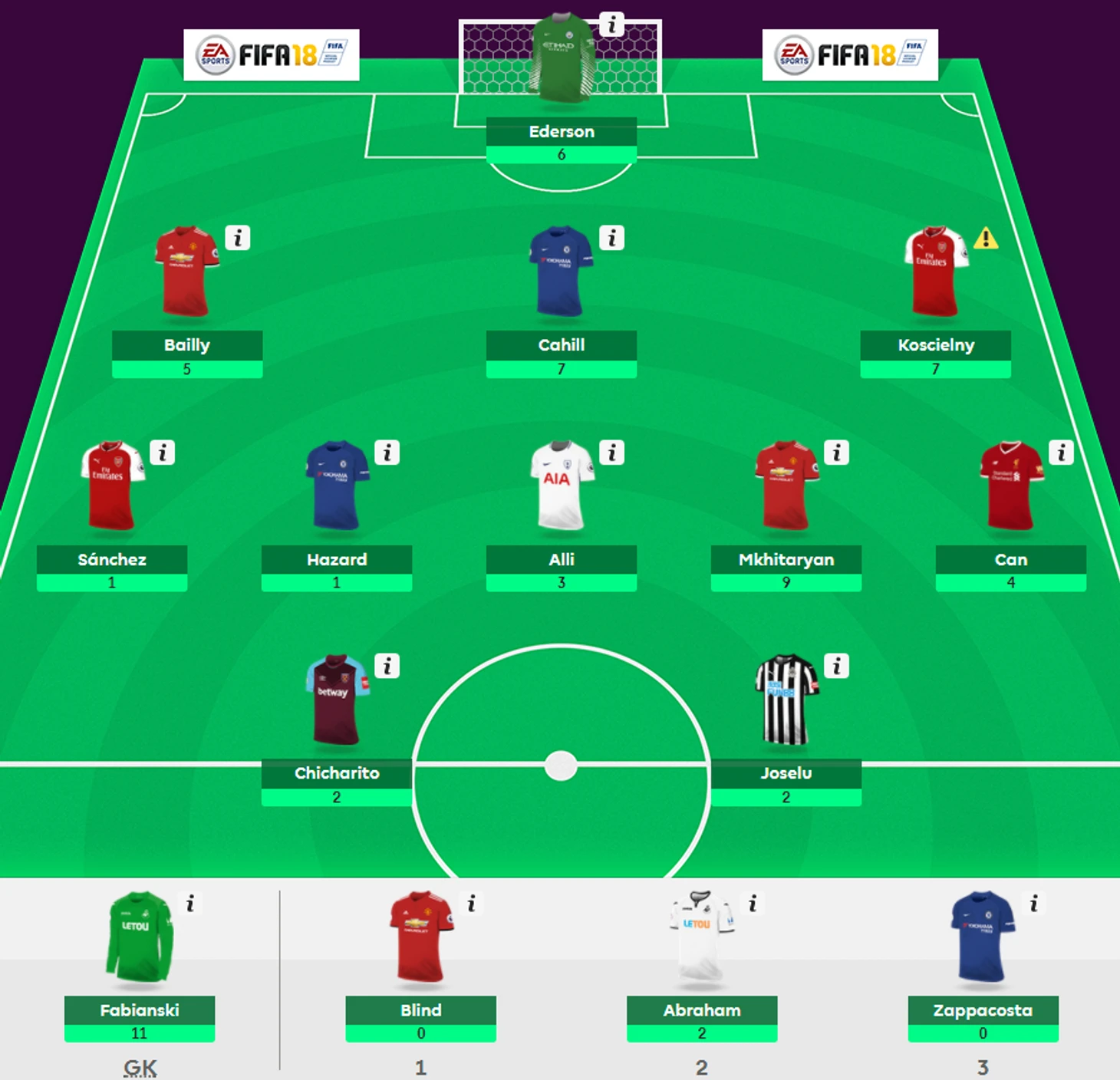 Снова очки принесли 2 игрока Манчестер Сити (Давид Силва и Стерлинг), а также Валенсия, Колашинац, Куртуа и лучший бомбардир чемпионата Лукаку.