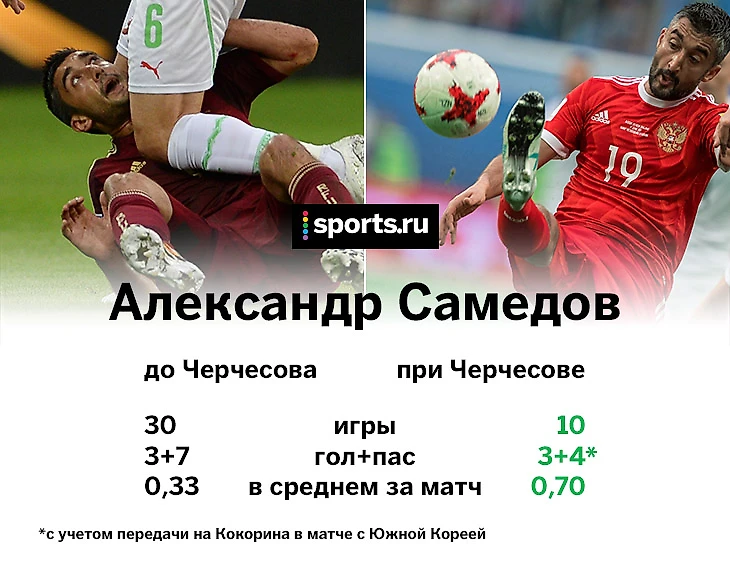 С августа 2016-го Самедов поучаствовал в 11 голевых атаках сборной. Лучший результат призыва Черчесова.
