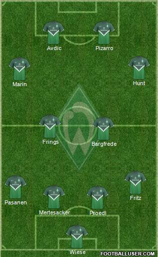 4-2-4 - Сдвоенный центр, разгоняемые фланги с кроссами в штрафную. И перуанец, и швед здорово играют головой. Кандидатуру Ханта можно оспорить. Просто более подходящего варианта в Бремене нет.
