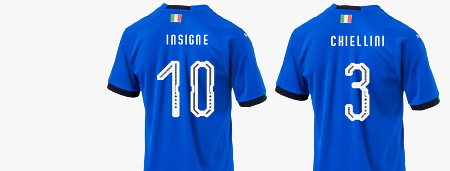 Новую форму и новую эмблему сборной Италии мы уже видели. Время обратить внимание на шрифт на форме. Рuma придумала кое-что интересное.