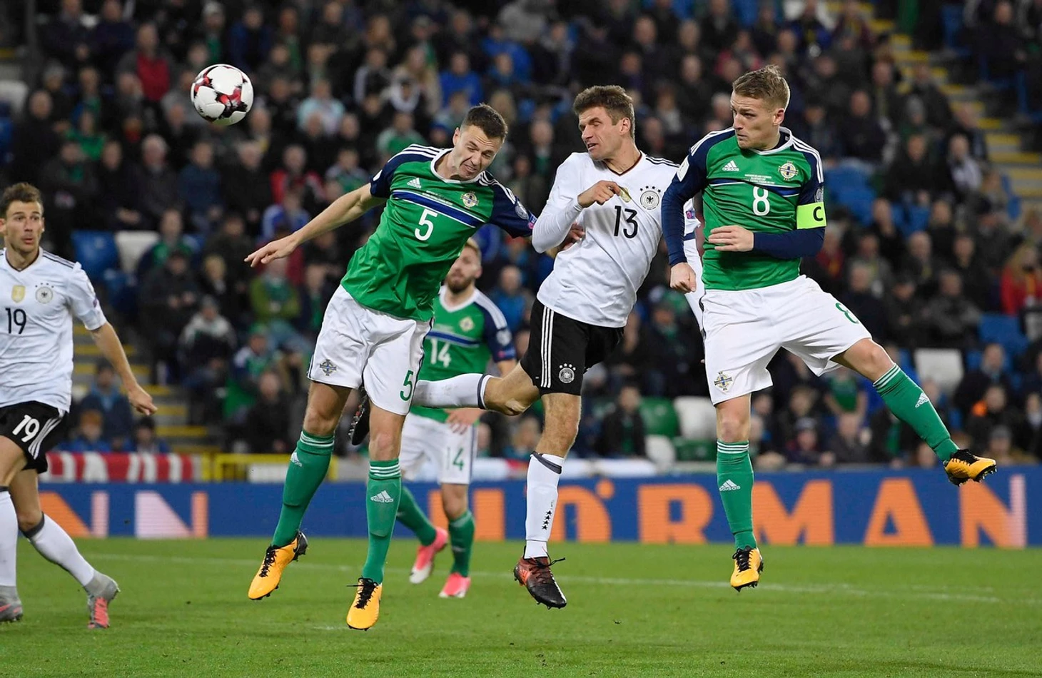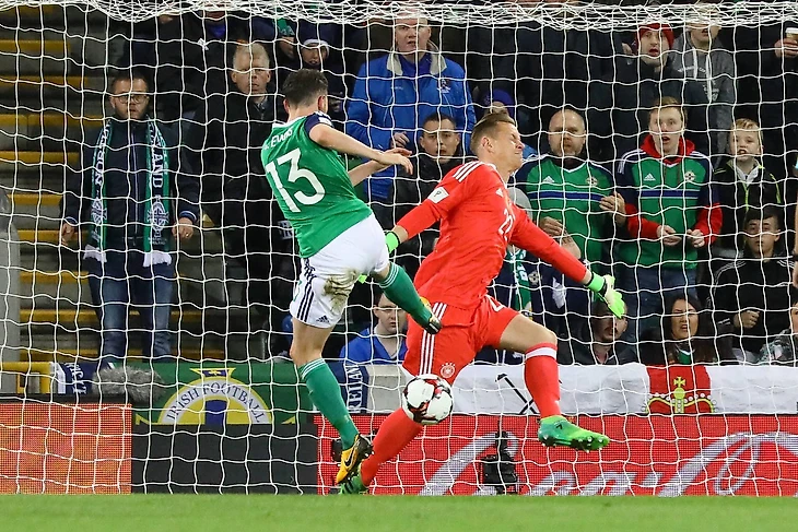 Но на пути к окончательному оформлению путёвки на грядущий чемпионат мира стояли суровые подопечные Майкла О’Нила. Полёты на британские острова всегда были нелёгким испытанием для немцев. Да и североирландцы не самый приятный соперник. Времена, когда сборная Германии могла спокойно разгромить «зелёно-белую армию», остались в середине 2000-х. В плей-офф французского Евро немцы лишь с минимальным счётом смогли одолеть Северную Ирландию. Да и в прошедшем на «АВД-Арене» противостоянии соперники позволили лишь дважды поразить свои ворота.
