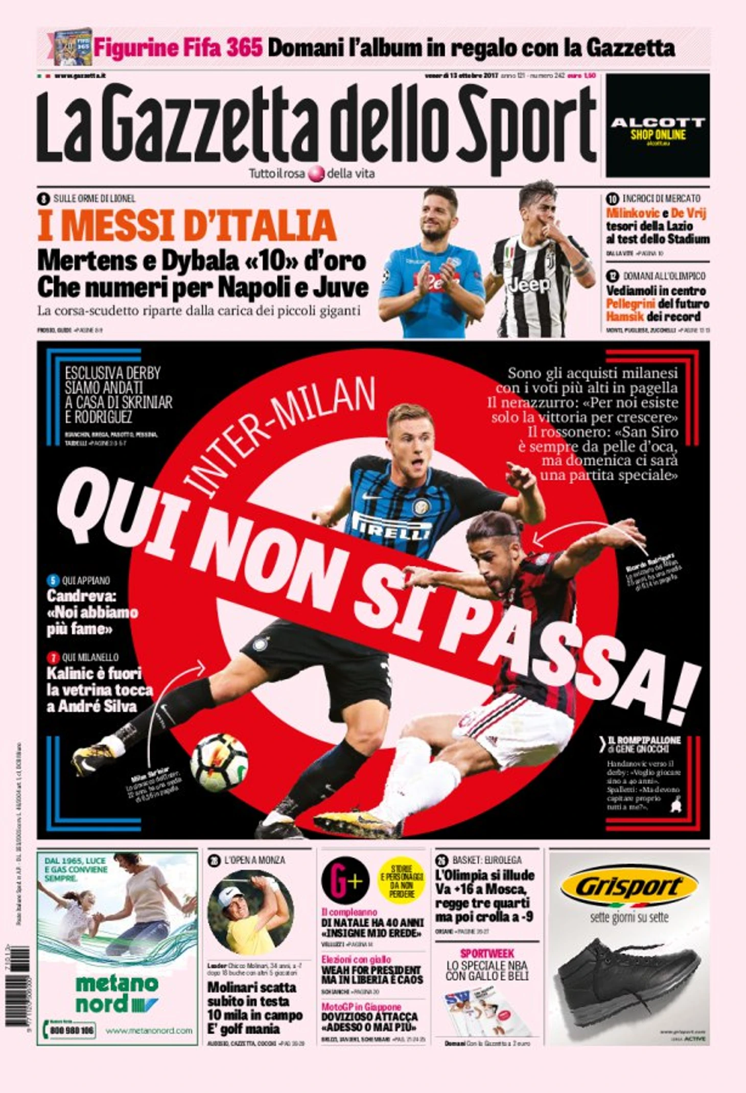 Здесь прохода нет! Заголовки Gazzetta, TuttoSport и Corriere за 13 октября