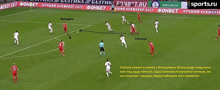 Матч против Ирана стал второй проверкой для пары Кокорин – Смолов. Александр вновь чаще всего пасовал на Федора (8 передач), но большинство из этих передач шли еще в середине поля. В финальной трети комбинация Кокорин – Смолов прошла лишь раз.