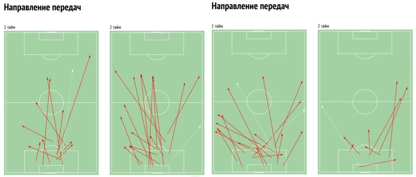 Направления длинных передач Лунева и Акинфеева существенно отличалось. Игорь на прошлых выходных по 4 раза выбивал мяч на Смолова и Кокорина, Андрей совершил лишь 3 передачи на Кокорина.