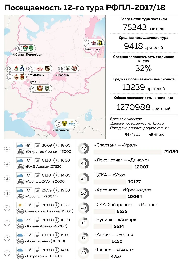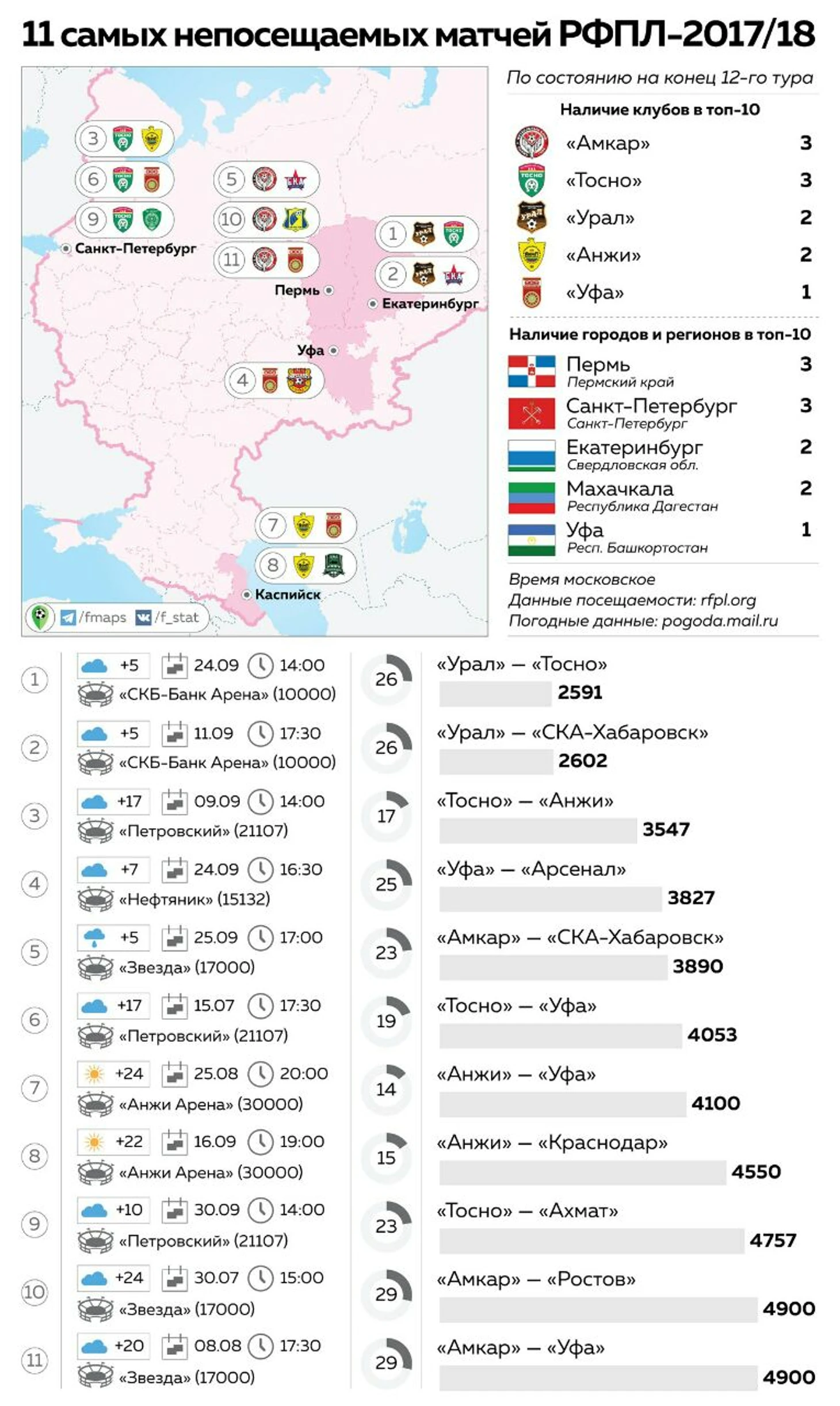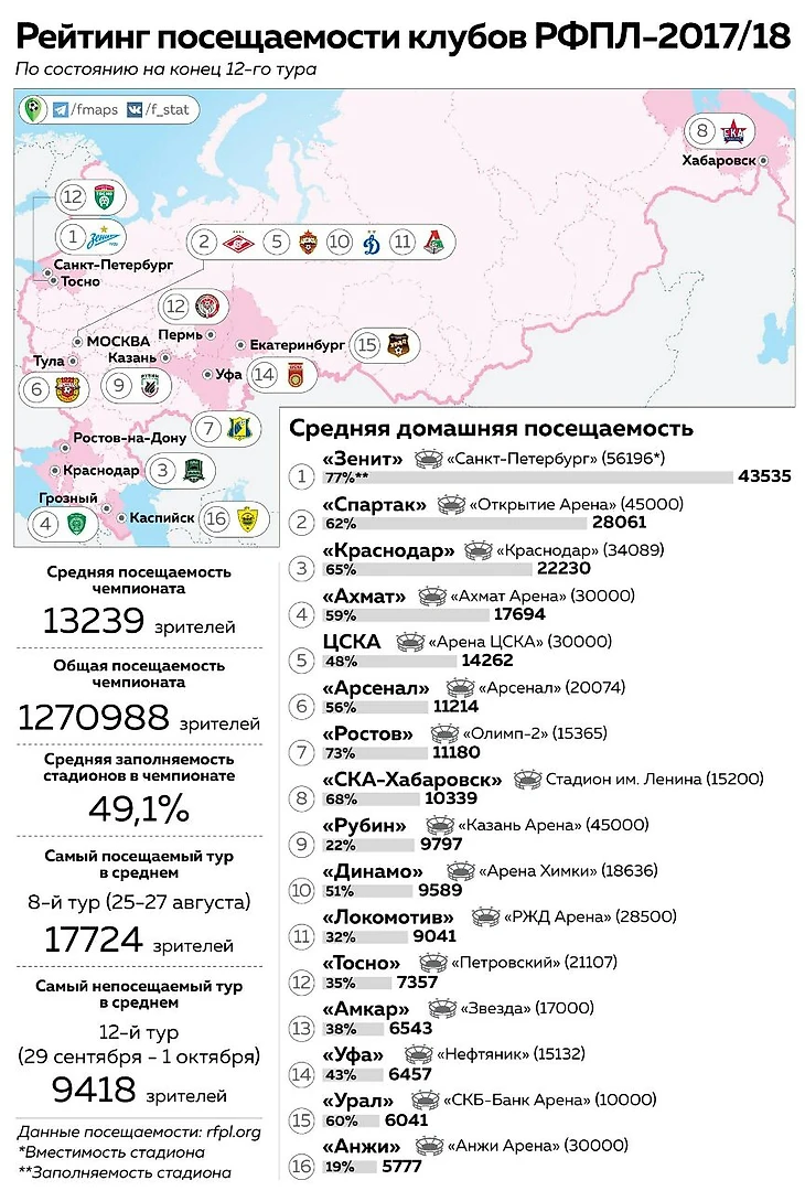 Посещаемость российской премьер-лиги. Самое важное после 12-го тура