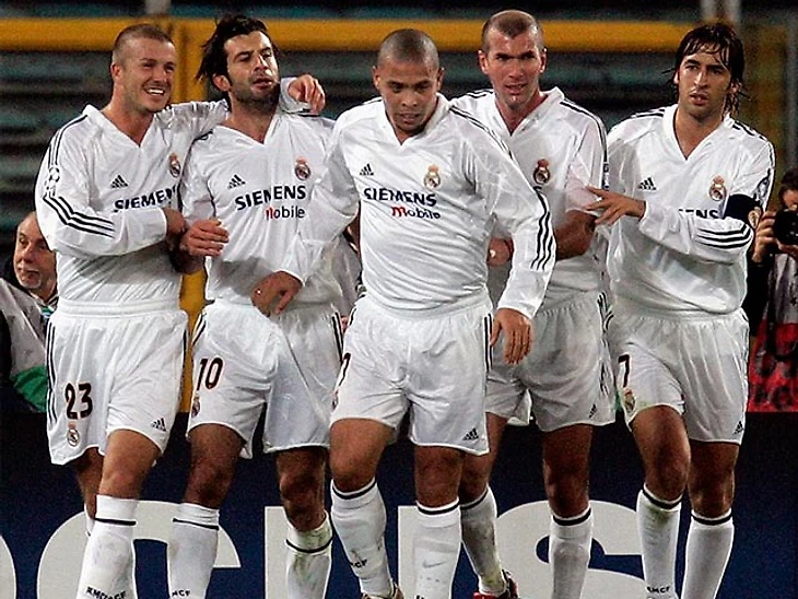 При президенте Пересе в клуб пришли такие Мега-величины как Луиш Фигу (из Барселоны), Зинедин Зидан, Майкл Оуэн, Дэвид Бекхэм, новоиспеченный чемпион мира Роналдо.. И это при том, что уже имелись Клод Макелеле, Мичел Сальгадо, Гути, да почти все футболисты того состава были мировыми звездами! Умело этим оркестром дирижировал Висенте Дель Боске.