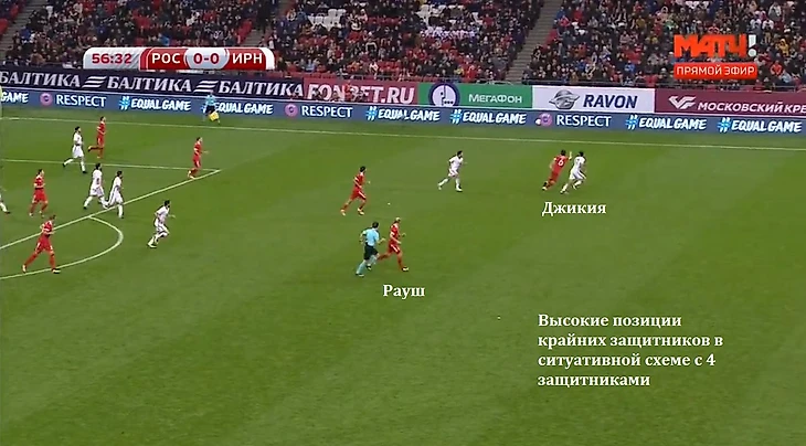 Вторая такая ошибка привела к голу Азмуна. Не думаю, что нужны дополнительные комментарии. Всё видно на скринах. Единственное, что замечу, это перестроение сборной России на схему с 4 защитниками. Ситуативное, потому что Фернандес занял высокую позицию. Рауш и Джикия - крайние защитники.