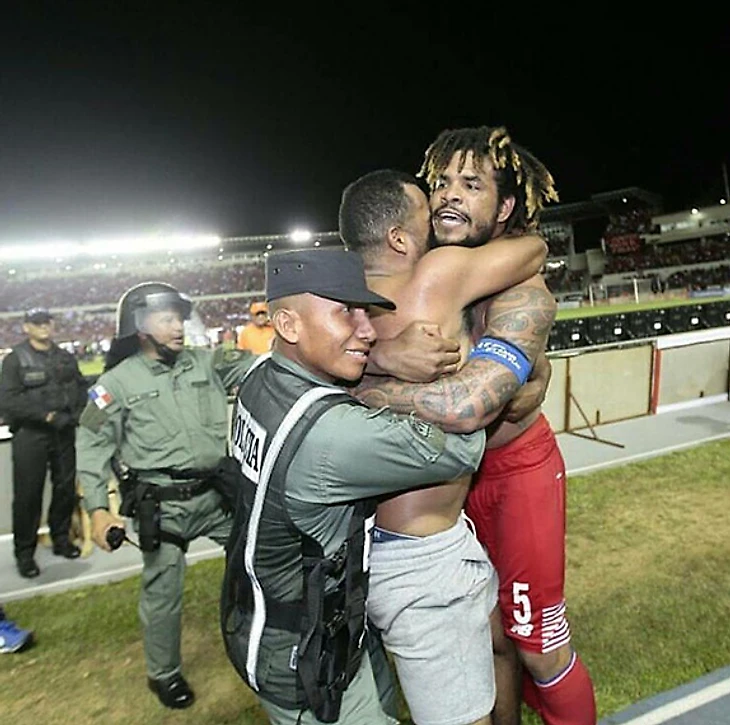 На этой неделе сборная Панамы впервые в истории пробилась на чемпионат мира. Защитника Романа Торреса, который забил победный гол в ворота Коста-Рики, хотела бы обнять вся нация. Вот тут получилось у фаната и полицейского: