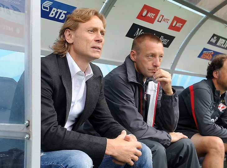 2013 год. Валерий КАРПИН и Андрей ТИХОНОВ на тренерской скамейке "Спартака".
