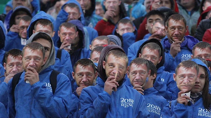 Болельщики "Крыльев Советов" поддержали Анрея Тихонова и поздравили его с днем рождения, надев маски с изображением главного тренера самарцев.
