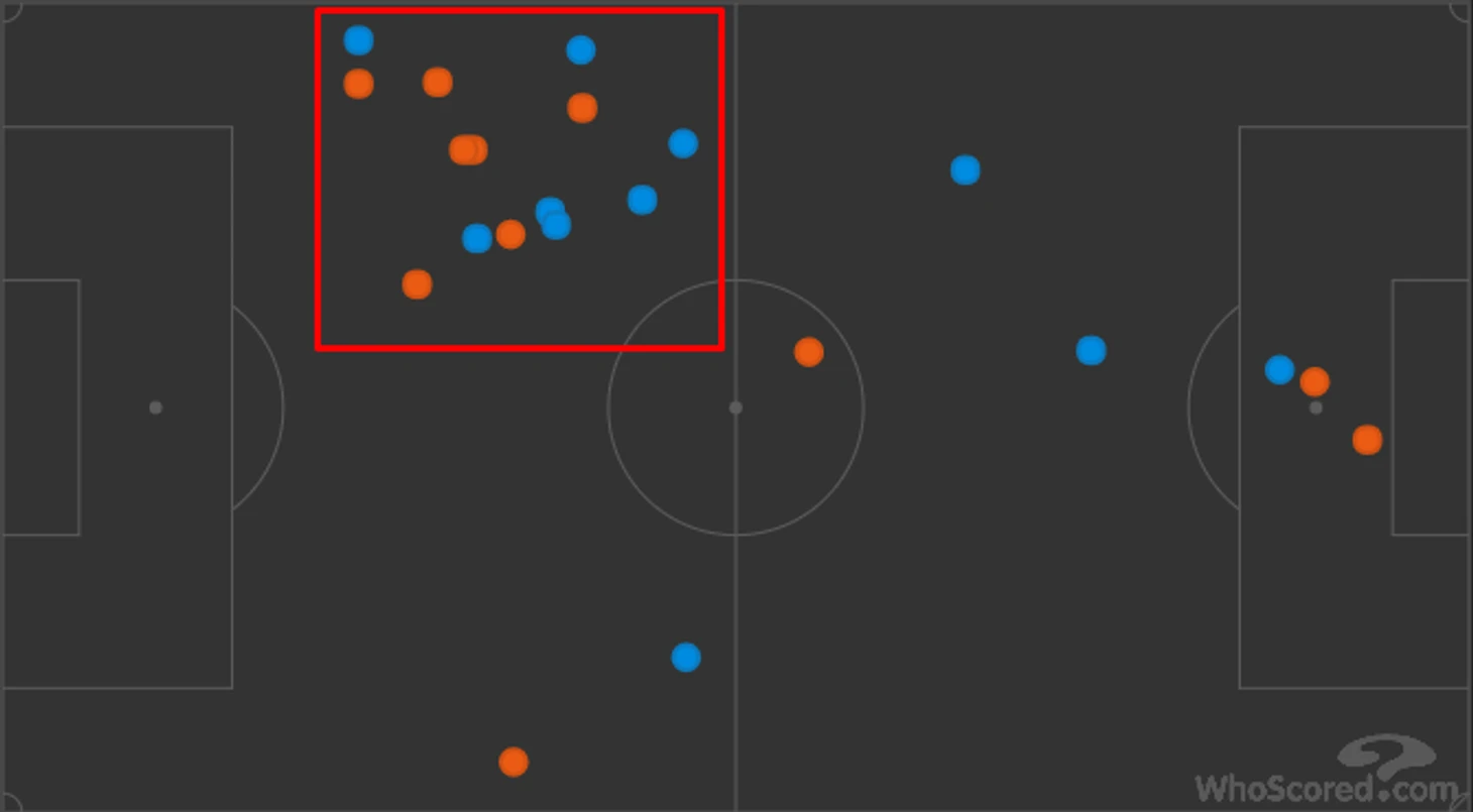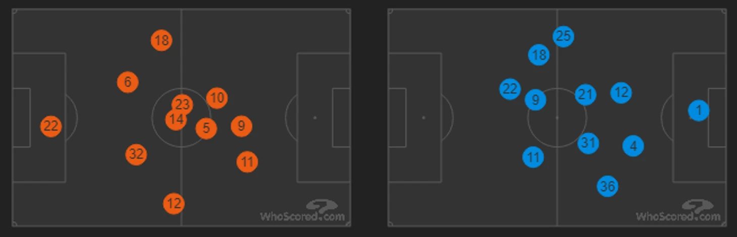 Расположение, где Лукаку в основном боролся в воздухе за мяч после выносов от вратаря и обороны, подозрительно совпадает с привычной для Феллайни позицией по этому сезону. Безусловно, потеря бельгийца стала ударом для команды, значительно ограничив варианты игры.