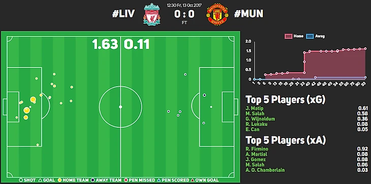 «Юнайтед» нанес один удар в створ за весь матч, а за второй тайм не нанес ни одного удара по воротам соперника, вчистую проиграв матч по xG.