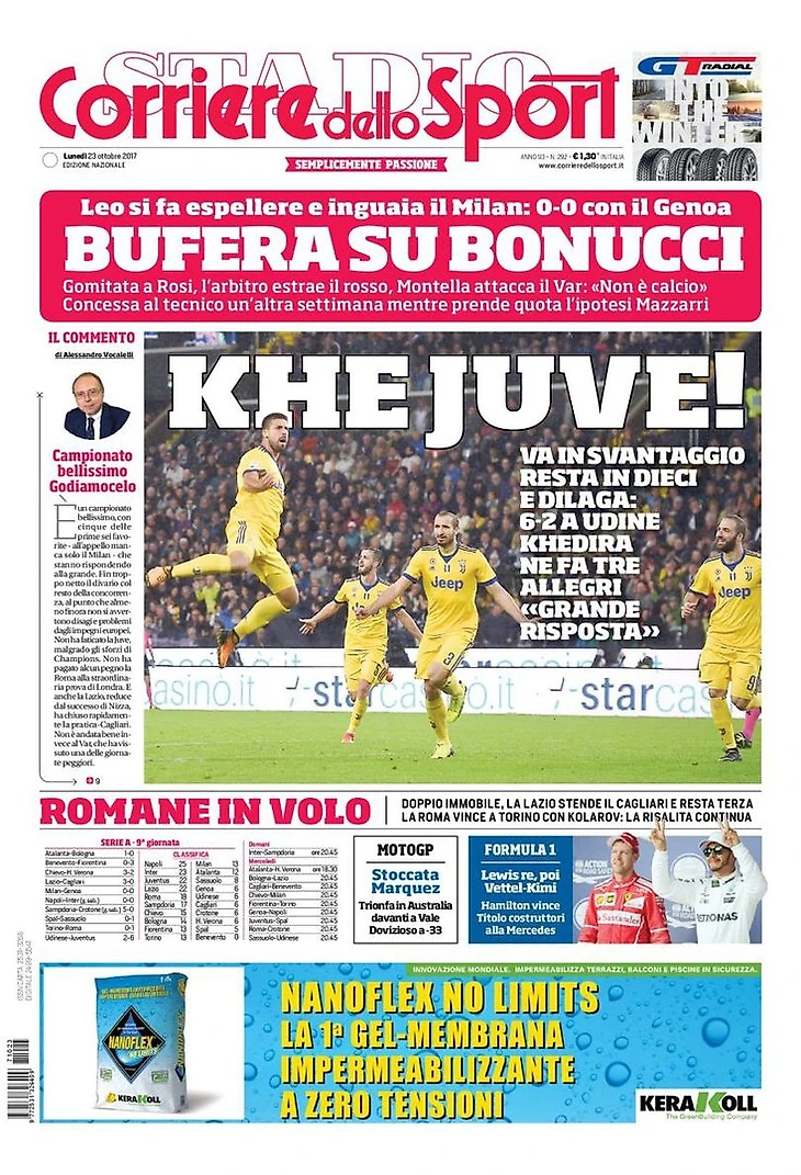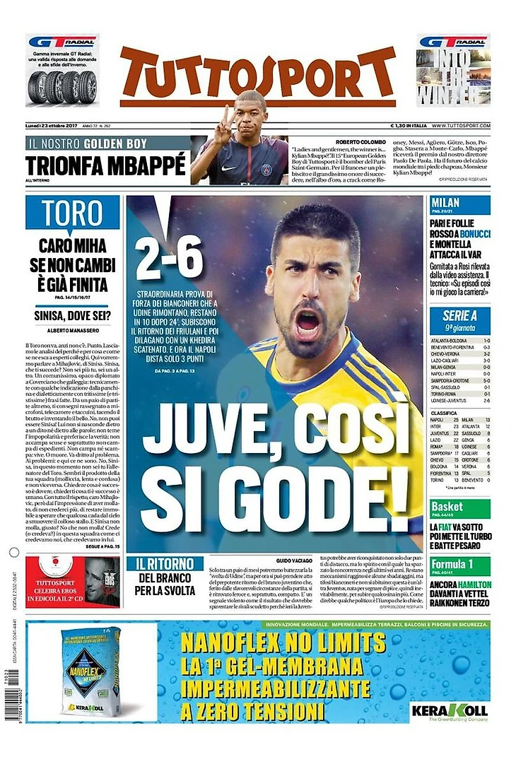 Хе «Юве». Заголовки Gazzetta, TuttoSport и Corriere за 23 октября
