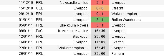 Из последних 6 матчей на выезде 2 игры «Ливерпуль» завершил вничью и 4 проиграл, начиная с победы над «Болтоном» 1-0 на «Рибок Стэдиум» 31 октября.