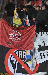 На флагах фанов московских армейцев можно видеть логотип Totenkopf( Танковая диви́зия СС «Мёртвая голова́»)